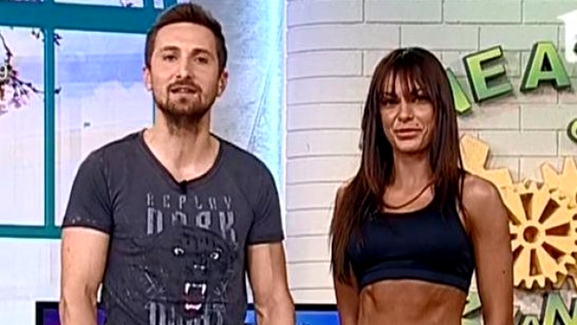 Dani Oţil a fost umit să vadă că tânăra, care este antrenor de fitness şi colaborează cu Neby, ştie că înainte de sport trebuie să se hrănească sănătos şi să vadă că abdomenul ei este un pachet de muşchi.