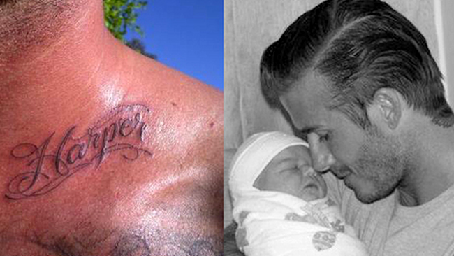 Pentru realizarea tatuajului a fost folosit un font fin si pretentios, care sa i se potriveasca micutei Harper. Mandru de cel mai recent „accesoriu” al sau, David a postat o fotografie pe contul sau de Facebook, pentru a le permite fanilor sai din intreaga lume sa-l admire.