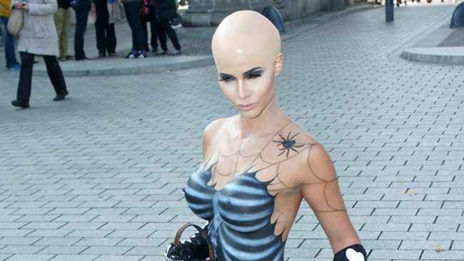 Corpul ei a fost acoperit de un desen care arăta ca o ecografie, la care au fost adăugate pânze de păianjen.
