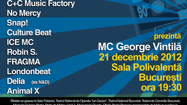 Biletele la „I Love the 90s” vor fi disponibile la următoarele prețuri și categorii: VIP – 300 RON, Cat. I – 175 RON, Cat. a II-a – 100 RON, Cat. a III-a – 75 RON și vor putea fi achiziționate incepind cu data de 2 noiembrie de la casele de bilete ale Sălii Palatului, Teatrului Național de Operetă ‘Ion Dacian’, Teatrului Național București, Teatrului de Comedie București, din magazinul Unirea – parter, stația de metrou Unirii 1, magazinele Diverta, oficiile Poștei Române semnalizate Bilete.ro precum și online, la www.vandbilete.ro, www.bilete.ro, www.eventim.ro, www.biletoo.ro, www.MyTicket.ro, www.blt.ro, www.bilet.ro.