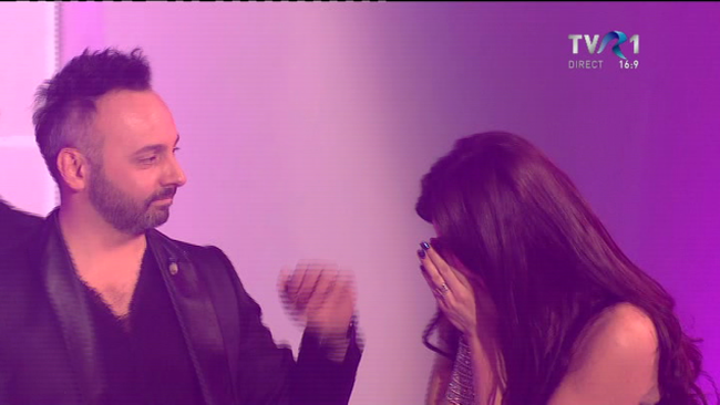 Paula Seling si Ovi s-au calificat si vor reprezenta Romania la Eurovision, la Copenhaga. Madalin Voicu le-a inmanat trofeul sambata seara pe scena de la Brasov. Potrivit martorilor, dupa show Paula a scapat statueta pe jos si s-a facut bucati.