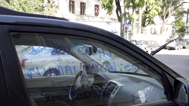 Nu, nu este vorba de SMS-uri, ci de propozitii scrise intr-un limbaj decent, dar pe un suport vizibil pentru soferul care nu respecta regulile: direct pe parbriz sau pe geamurile laterale.