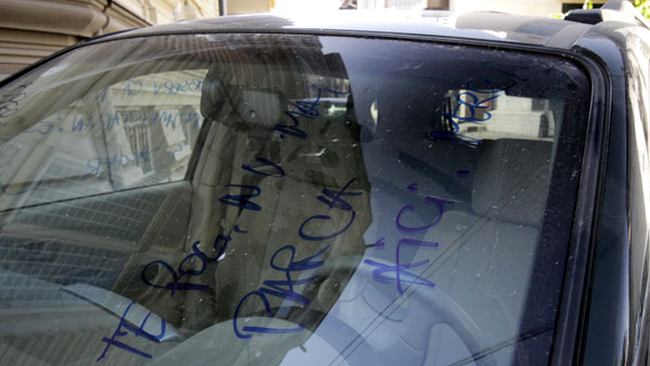 Vazand ca soferul in cauza n-a mutat masina dupa primul mesaj, autorul acestuia a continuat sa-i lase "amintiri" cu markerul, unul tot pe parbriz, iar ultimul pe geamul portierei dreapta-fata.