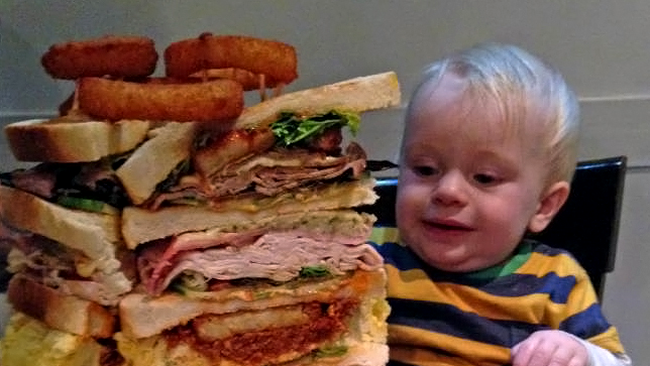 Sandvișul numit Gigantwich conținea de trei ori cantitatea de calorii recomandată pe zi, respectiv 2.500, și era compus din cârnați, șuncă, curcan, miel, vită, porc, diverse feluri de brânză, omletă, roșii, castraveți, salată, ceapă, maioneză și muștar.