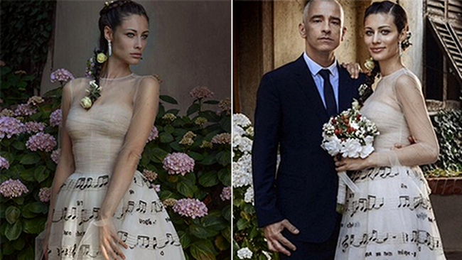 Casa de modă Valentino a publicat pe contul ei de Twitter o fotografie a tinerei mirese, duminică, la o zi după ceremonia de nuntă. O altă fotografie, dată publicităţii tot de casa Valentino, îi prezintă pe cei doi miri, care au deja împreună o fiică în vârstă de doi ani, Raffaela Maria, în curtea Palatului Regal din Milano, după ceremonia de nuntă.