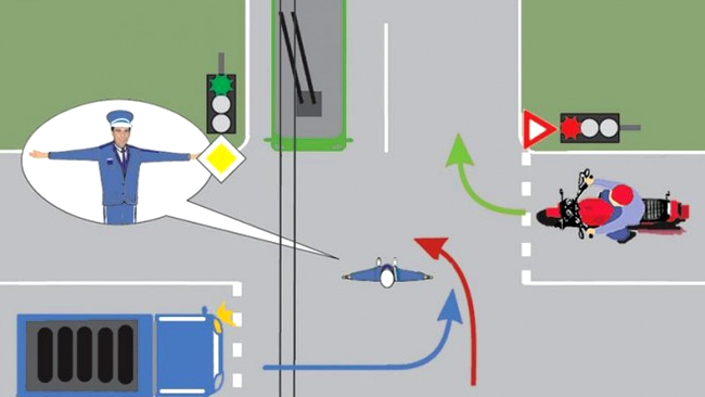 Această situaţie este grăitoare. Pare simplu de rezolvat, dar nu este. Ce autovehicule pot pătrunde în intersecţie? Vezi mai jos răspunsul corect.