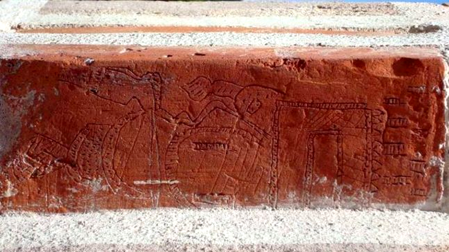 Pe o cărămidă din exteriorul lăcaşului de cult este desenat un personaj pe care sătenii îl consideră nepământean.