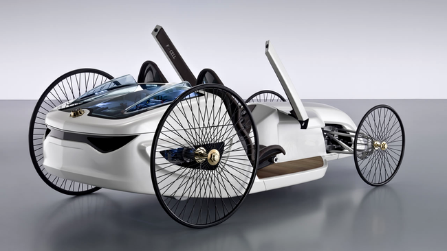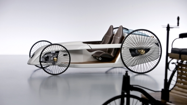Design-ul special al automobilului aminteste de modelul cu trei roti, Benz Patent Motorcar (sau Motorwagen), comercializat in 1886.