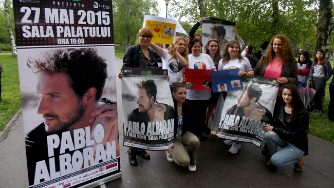“Alboranistii”, asa cum s-au autointitulat cei care-l iubesc pe artistul Pablo Alboran, au sfidat ploaia si vantul din Bucuresti si au dansat pe piesele celui mai vandut artist al ultimilor 4 ani in Spania, Portugalia si America Latina, pentru a-i arata cat de fericiti sunt de venirea lui pentru prima data in Romania, la invitatia VreauBilet, pe 27 mai, la Sala Palatului.