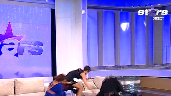 Din păcate, cele două ajutoare, Natalia Mateuţ şi Elena Marin, nu au putut susţine greutatea lui Morar, iar prezentatorul a căzut direct peste ele, lovindu-se destul de tare la cap.