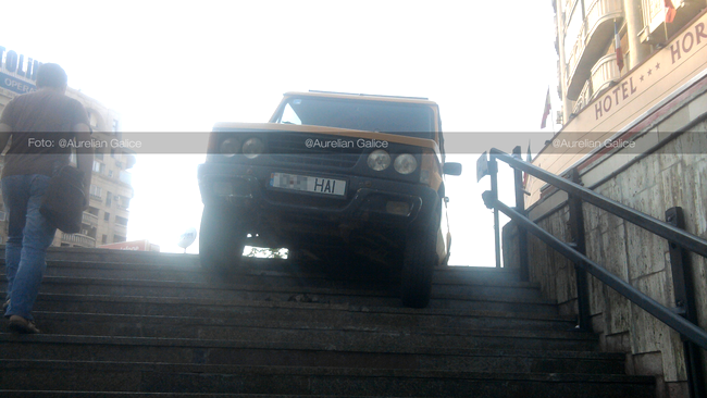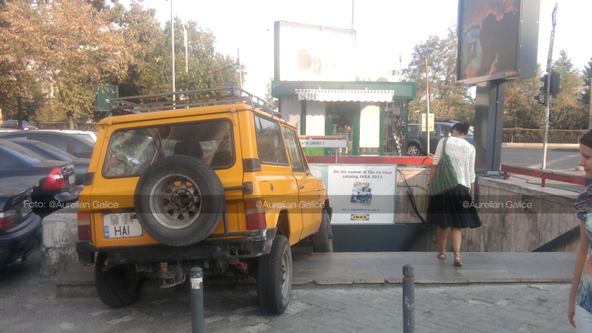 Un accident foarte straniu, dacă poate fi numit așa, a avut loc în această dimineață. În urma „accidentului”, un Aro 10 galben a reușit să treacă de stâlpii metalici de protecție și să se „înfigă” pe scările de acces la metrou Unirii, în București, la intrarea dinspre Hotel Horoscop.