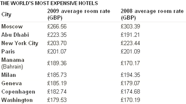 Hotelurile din Moscova au fost clasate pe primul loc, pentru al cincilea an consecutiv, intr-un sondaj al celor mai scumpe hoteluri din lume.