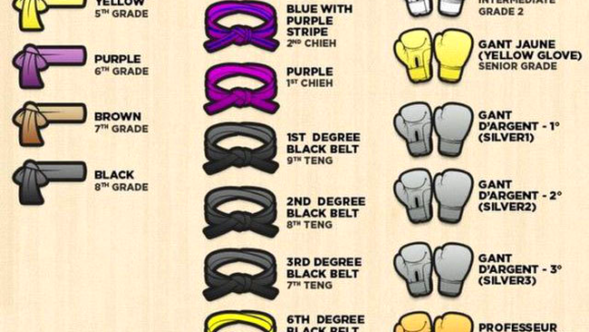 Dacă majoritatea artelor marțiale folosesc centurile pentru a departaja valoarea și aptitudinile practicanților, acestea mergând de la culoarea albă – de regulă începători – până la cea neagră – experți -, alte sporturi, cum ar fi savate, diferențiază valoarea practicanților după culoarea mănușilor.
