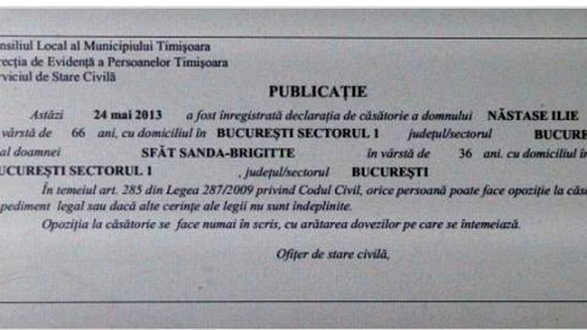 Actul care demonstrează căsătoria dintre Ilie și Brigitte