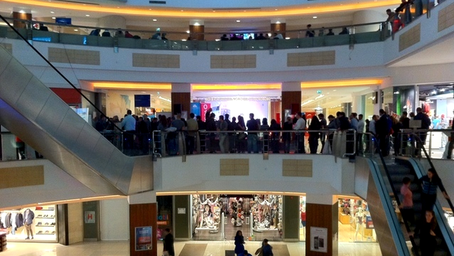 Peste 100 de persoane au fost prezente in fata magazinului Vodafone din mall-ul Plaza Romania cu ocazia lansarii noului iPhone 4S