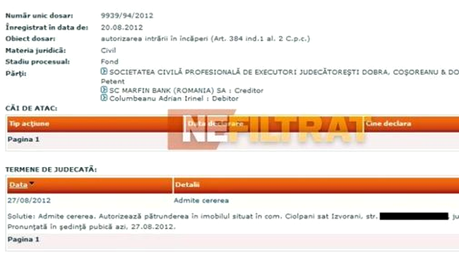 Potrivit site-ului nefiltrat.ro, datoria lui Irinel Columbeanu la respectiva bancă s-ar ridica la șapte milioane de euro, iar executorii au primit deja OK-ul judecătorilor să intre în vila din Izvorani pentru a pune sechestru pe bunuri.