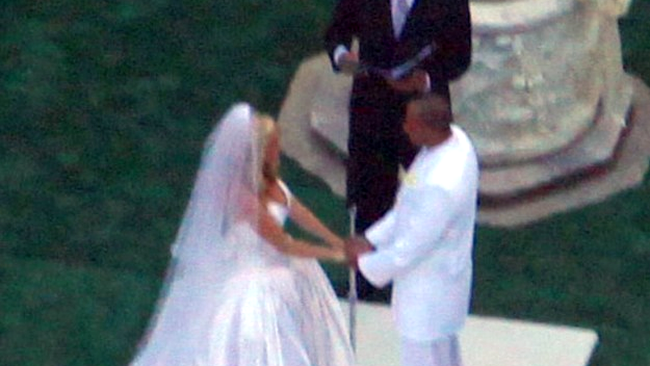 „Kendra a pasit spre altar intr-o rochie alba si bijuterii create de Michael Barin in valoare de 100.000 de dolari. Mirele s-a imbracat, de asemenea, in alb. Printre invitati s-a aftat si fostul iubit, Hugh Hefner„, relateaza People.