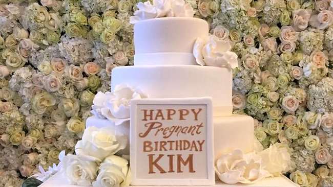 Soţul ei a vrut să îşi facă soţia să zâmbească şi i-a cumpărăt o grămadă de trandafiri şi un tort pe care scria „La mulţi ani, Kim cea însărcinată”. Vedeta TV nu a stat pe gânduri şi a făcut o fotografie pe care a pus-o imediat pe Instagram.