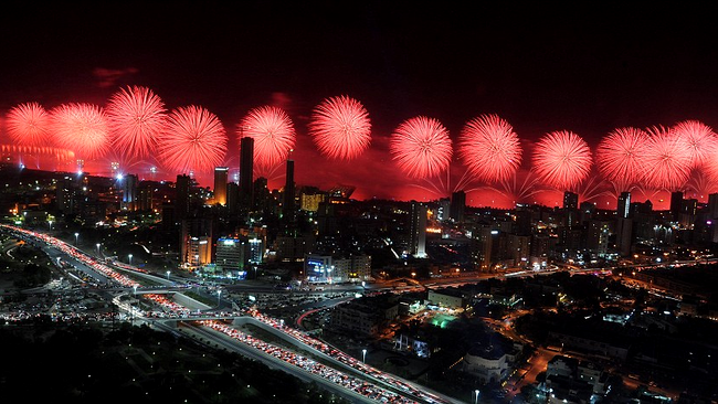 Folosind „meschina” sumă de 12,5 milioane de Euro, organizatorii au lansat, timp de o oră, 77.282 de artificii deasupra capitalei, Kuwait City, spectacolul fiind urmărit de zeci de mii de locuitori.