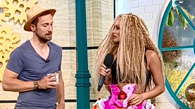 Pe numele ei real Olga, cântăreaţa a purtat o ţinută nonconformistă în această dimineaţă, la Antena 1.