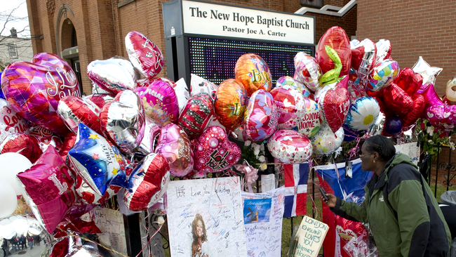 Bobby Brown a fost invitat la înmormântarea lui Houston, dar a decis să vină cu întreg anturajul lui de 9 persoane. Acesta a apărut la biserica din Newark, New Jersey, cerând că toţi 1o să fie aşezaţi în primul rând, dar a fost refuzat. Doar lui i s-a permis să intre, iar acesta s-a apropiat de sicriu cu ochii înroşiţi de lacrimi, apoi a ieşit repede. „A stat doar 15 minute”, a declarat o sursă pentru US Magazine.