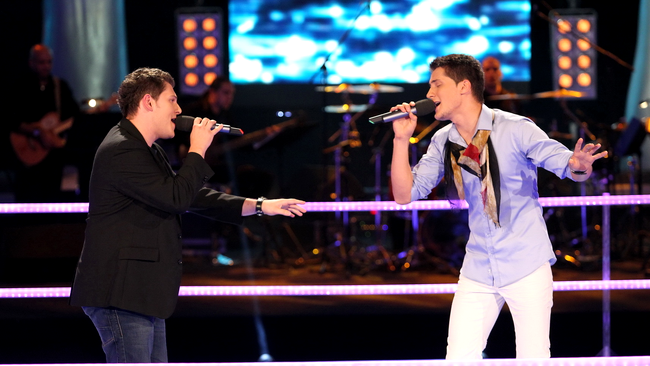 A venit si randul lui Maximilian Munteanu sa cante la duet. Maximilian Muntean a cantata alaturi de Marian Vasile, un fost concurent de la Romanii au Talent. De aceasta data cel care a ramas in competitie a fost Mazimilian care a declarat ca abia asteapta sa se dueleze cu fratele sau, si el concurent la Vocea Romaniei. Cei doi au cantat piesa Hey Jude de la Beatles. VEZI VIDEO