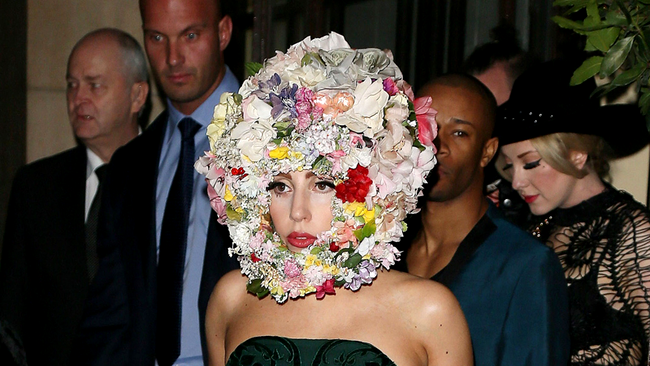 Lady Gaga, acoperită cu flori la London Fashion Week