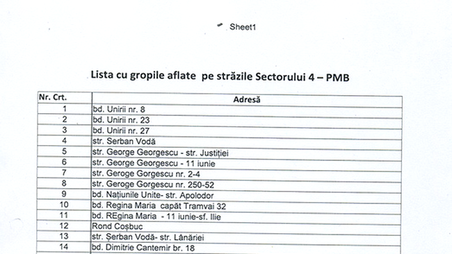 Referitor la gropile existente pe străzile aflate în administrarea Primăriei Sector 4, se va trece, în etape, la refacerea infrastructurii rutiere. În cazul celor identificate pe marile artere de circulație, din dispoziția Primarului Cristian Popescu – Piedone, întreaga documentație a fost depusă la registratura Primăriei Municipiului București, spre știința Primarului General, singurul cu atribuții în remedierea situației, prin demararea de către Municipalitate a lucrărilor de reabilitare.