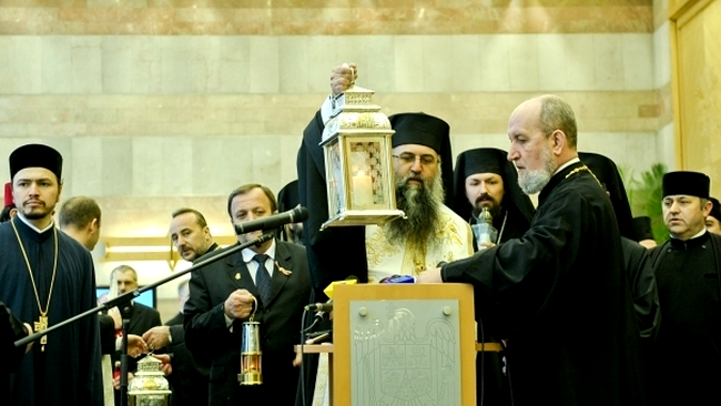 Lumina Sfanta de la Ierusalim a fost adusa, seara trecuta, cu o aeronava, pe Aeroportul din Suceava, de o delegatie condusa de presedintele CJ Suceava, Gheorghe Flutur, urmand sa fie impartita parohiilor sucevene si delegatiilor din Botosani, Iasi, Bistrita-Nasaud, Neamt, Constanta si Cernauti.