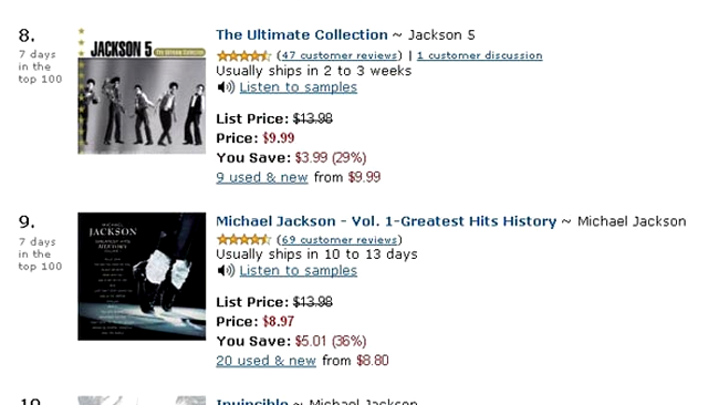 Pe site-ul Amazon.com exista si o dovada in acest sens. Iata un screenshot cu cele mai vandute 10 albume de pe site, la ora actuala.
