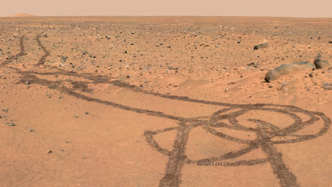O imagine a urmelor roților unuia dintre cele două vehicule ale NASA care explorează solul marțian a devenit virală pe internet și a cauzat inclusiv căderea site-ului NASA din cauza numărului mare de accesări.