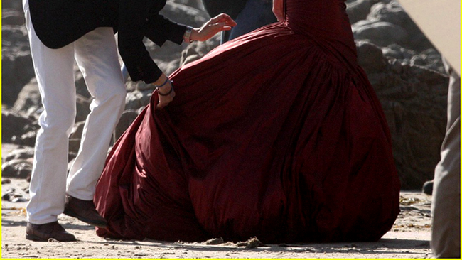 Nicole Kidman s-a imbracat ieri intr-o rochie superba "de epoca" si s-a plimbat pe o plaja din Malibu, purtand un parasol.