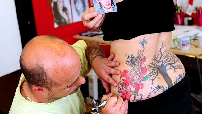 apelat la sotul ei, artist de tatuaje, pentru a-i desena pe piele
