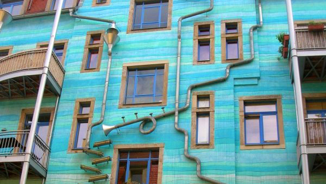 In Kunsthofpassage, o zona din districtul studentesc Neustadt, din Germania, exista un perete acoperit cu tevi de scurgere a apei de ploaie si capcane pentru soareci.