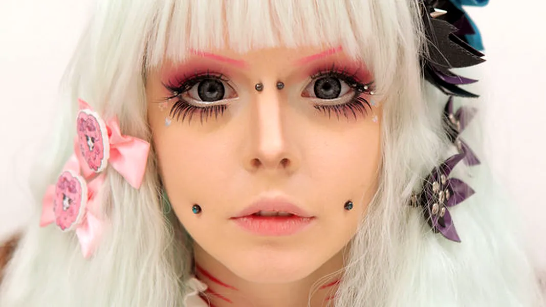 Cum arată femeia cu sprâncene roz și cercei în obraji care face furori pe internet
