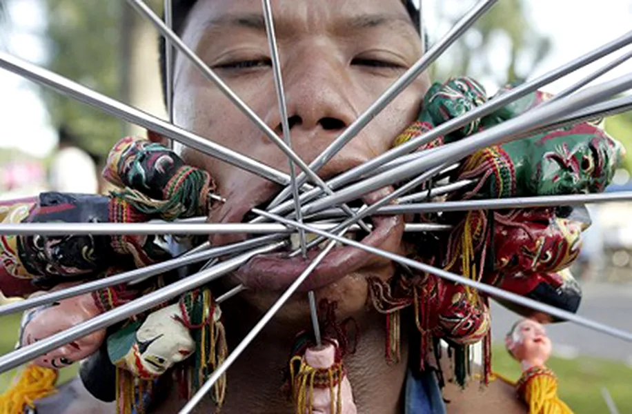 La Festivalul Vegetarienilor, thailandezii se automutileaza (Video)