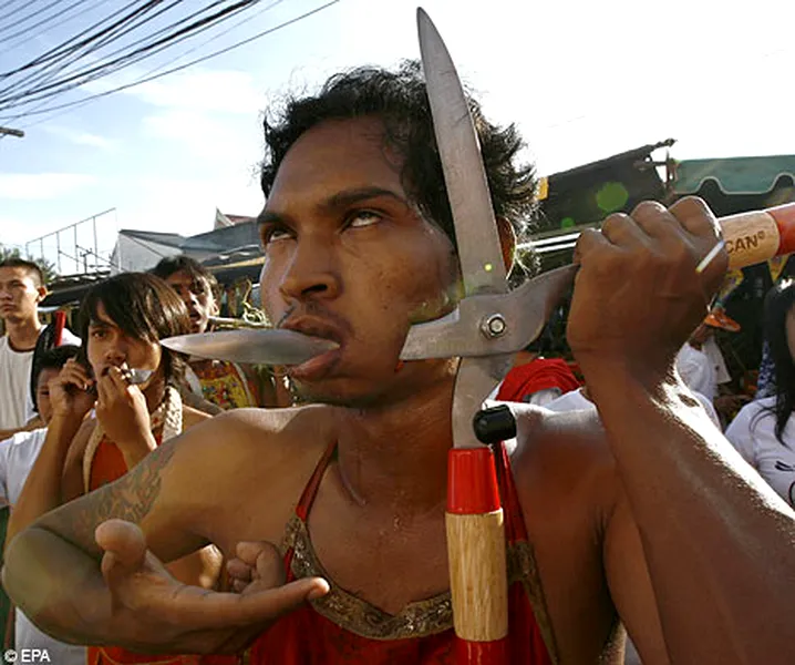 La Festivalul Vegetarienilor, thailandezii se automutileaza (Video)