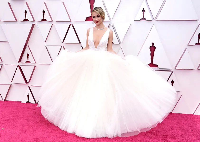 Oscar 2021: Auriul și culorile vii au dominat ținutele de pe covorul roșu (FOTO)