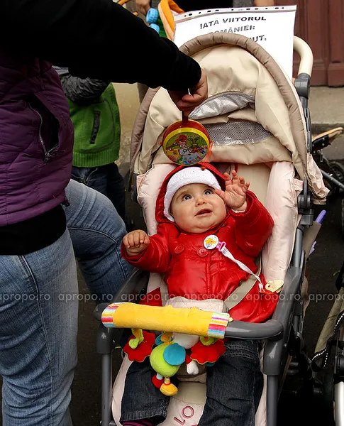 POZA ZILEI: Parintii au „luptat” cu bebelusi si pampersi folositi, pentru salvarea indemnizatiei