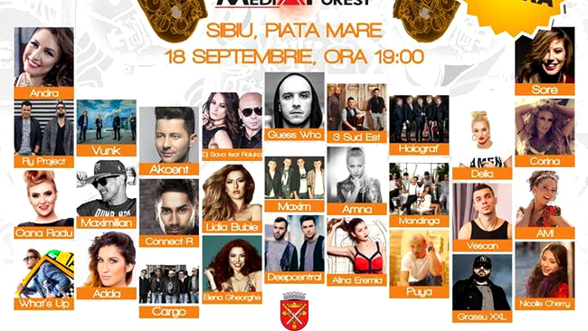Media Music Awards va avea loc pe 18 septembrie în Piaţa Mare din Sibiu şi este singura gala muzicală din România unde premiile se acordă în mod 100% transparent, pe baza difuzărilor radio-TV, pe baza statisticilor Media Forest, .