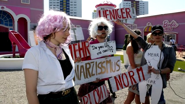 Mai multe membre ale grupării de stânga Femen s-au adunat în fața casei dedicate imperiului păpușii Barbie, un nou punct de atracție din Berlin descris drept o inițiativă „de propagandă sexistă”.