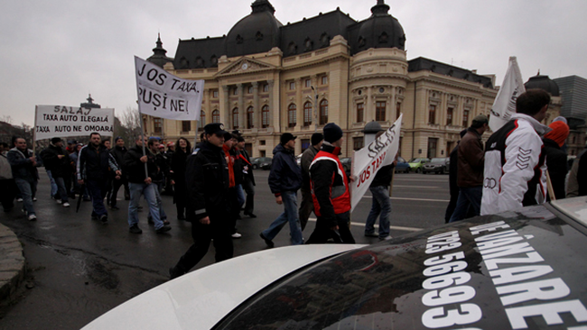Peste 300 de persoane au protestat, astazi in Capitala, impotriva triplarii taxei auto.