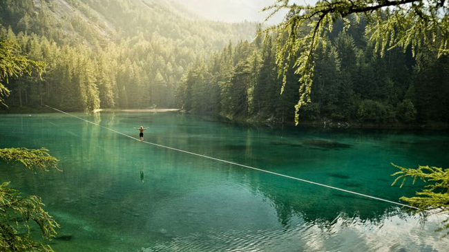 Mich Kemeter a stabilit un nou record mondial traversând un lac pe o frânghie, pe care a mers 250 de metri.
