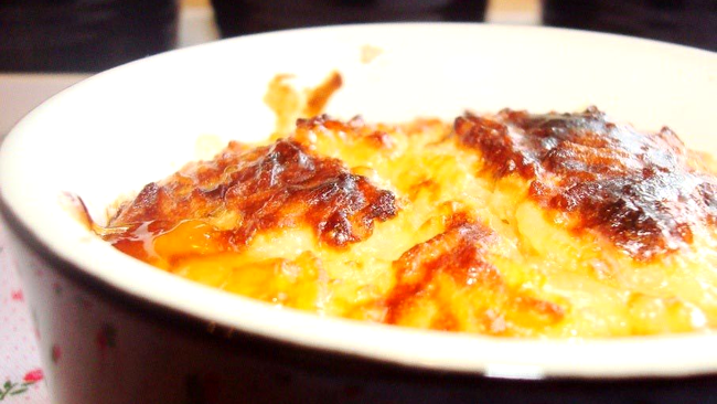 3. Budincă cu sos alb și brânză