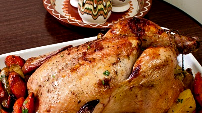 Pui la cuptor cu sirop de arțar și cartofi dulci