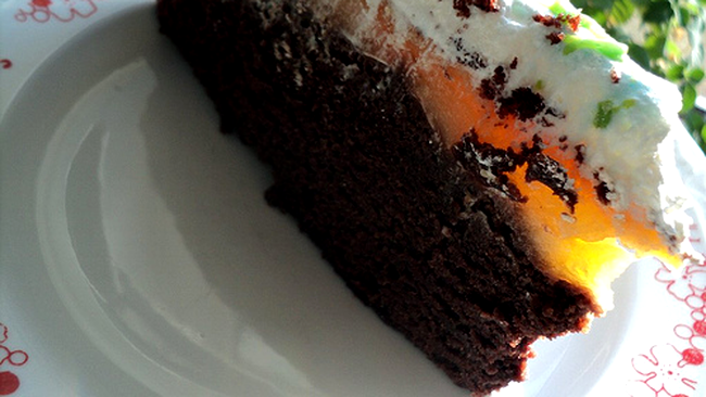 3. După ce s-a răcit, tortul se ornează cu frișcă și cu ciocolată dată pe răzătoare.