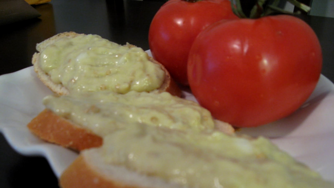 Se coc vinetele și 1ardei mai mare pe grătar. Se lasă să se răcească. Se curăță și se lasă să se scurgă bine. Se toacă cu un cuțit de plastic sau lemn. Ardeiul se taie cât mai mărunt posibil. Se pune ardeiul peste vinete și se mixează bine, până devin cremoase (nu folosiți blender sau robot de bucătărie cu cuțit – se taie semințele de la vinete și își schimbă gustul!). Se adaugă puțin câte puțin ulei. Se pune ceapa (rasă sau tăiată foarte mărunt!), sare, piper proaspăt măcinat și suc de lămâie, după gust. Se adaugă maioneză. Se poate servi ca aperitiv, ca umplutură pentru roșii sau sa dip cu tortilla și roșii.