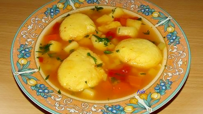 8. Supă de pui cu găluște și roșii