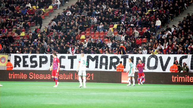 Suporterii de la tribuna a doua au afisat un banner de circa 15 metri pe care scria: „Respect Martinovici” si au arborat drapelul Serbiei.