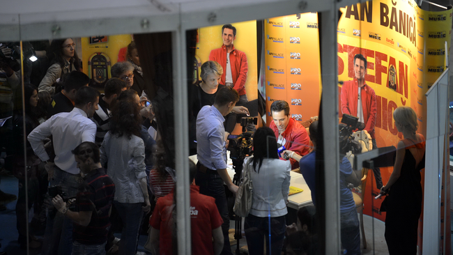 Timp de mai bine de patru ore, Ştefan Bănică a făcut sute de poze, semnând tot atâtea albume şi postcarduri pentru numeroşii fani emoţionaţi.